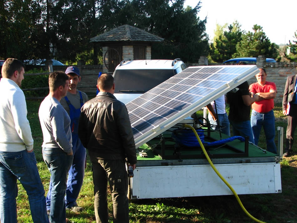Zajednički projekt udruge Zeleni Hrvatske i Klastera energetske efikasnosti uz potporu RH Fonda za zaštitu okoliša i energetsku učinkovitost, koji podiže svijesti o važnosti uporabe obnovljivih izvora energije, sunčeve energije,edukacijom o mogućnostima primjene pokretnog solarnog sustava za navodnjavanje obradivih površina OBŽ i smanjenju ovisnosti o fosilnim gorivima, smanjenju emisije stakleničkih plinova i zaštiti okoliša,te ruralnom razvoju,provedba cijelog projekta je bila na području OBŽ ,na 5 interaktivnih radionica KNEŽEVI VINOGRADI/KARANAC,BATINA, DRAŽ,POPOVAC/BRANJINA I ČEMINAC uz predavanja stručnjaka i praktičnu primjenu pokretrnog solarnog sustava za navodnjavanje. Sve prikupljene informacije dugogodišnjim radom na području OBŽ ukazuju na ozbiljno razvojno zaostajanje Osječko baranjske županije i potrebu za informiranjem svih dionika -građana, poljoprivrednika, turističkih djelatnika, JLS, općina, voćara, ratara, kojima smo na interaktivnim radionicama, kroz provedbu projekta ukazali na prednosti pokretnog solarnog sustava za navodnjavanje. Baranja je područje bogato vodom, a pokretnim solarnim sustavom za navodnjavanje dobivamo gotovo besplatno navodnjavanje. Prednosti pokretnog solarnog sustava za navodnjavanje: sustav u potpunosti koristi OIE solarnu energiju, energetski je učinkovit, produktivan, dugotrajan, u potpunosti je ekološki prihvatljiv, pokretan je, omogućuje navodnjavanje na jednostavan i jeftin način, na različitim poljoprivrednim površinama udaljenim nekoliko kilometara, jer je sustav postavljen na auto prikolicu ili traktorsku prikolicu i može navodnjavati različite površine, lokacijska neovisnost, jednostavna montaža, nema održavanja, nema povezivanja na električnu mrežu, visoka učinkovitost i vidljiva ušteda Sustav može crpiti vodu iz bunara i u večernjim satima, jer je tako koncipiran, kako bi mogao opskrbljivati polja čak i do 15 sati dnevno. Prikolica je uporabljiva samostalno tako da u slučaju potrebe možete uporabiti prikolicu za prijevoz bilo čega do težine 2000 kg. Daleko od svakog priključka el.energije imate mogućnost navodnjavanja polja, plantaža, plastenika ili vrtova bez stakleničkih plinova, CO2,ali sa mobilnom efikasnošću.